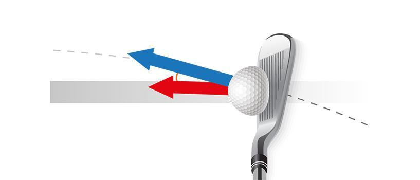 Face to path: Club path – Face angle (measured at point of maximum compression)